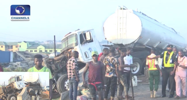 The spokesman for the Lagos State Police Command, Jaiyeoba Joseph, who confirmed the incident, said that the driver of the truck was however, at large.