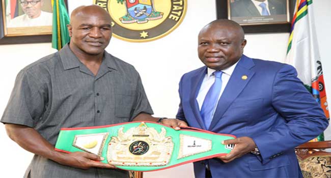 Lagos State Governor, Mr Akinwunmi Ambode, on Wednesday received former world boxing heavyweight champion, Evander Holyfield at the Government House in Alausa. Holyfield is in … Continue reading [PHOTOS] Ambode Welcomes Evander Holyfield To Lagos