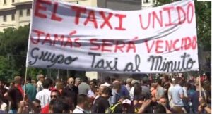 Local taxi drivers in the Spanish capital were joined by thousands of their colleagues from different parts of Spain in a colourful march from one of the main train stations to the vicinity of parliament where Julio Saenz, president of the taxi federation, filed the grievances of his union.