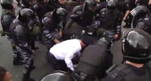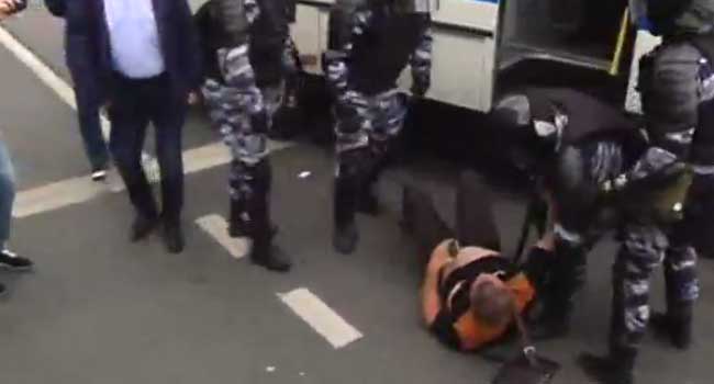 Authorities in Moscow said Monday’s protest was illegal and drafted in hundreds of riot police who moved to detain people they regarded as trouble makers, loading them onto buses to be charged.