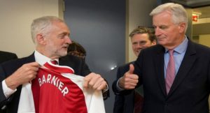 Barnier took Corbyn for a tour of his office and exchanged gifts with him. The Labour Party leader offered the Frenchman an Arsenal Football Club jersey with ‘BARNIER’ written on the back.