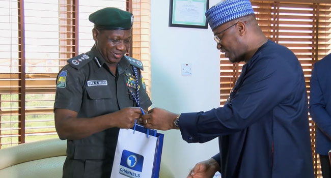 The Inspector General of Police, Ibrahim Idris, on Thursday visited the corporate headquarters of Channels Television in Lagos.