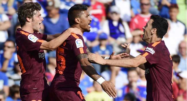 Barcelona moved seven points clear of Real Madrid after continuing their 100 percent record in with a 2-1 win at Getafe.