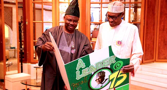 Beyond wishing the President well, Governor Amosun Presented him with a card to mark the day.