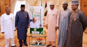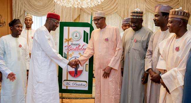 The President’s aides, led by his Chief of Staff Abba Kyari and Permanent Secretary of the State House Jalal Arabia, also presented him with a huge card which they all signed congratulating him on the special occasion and wishing him well.