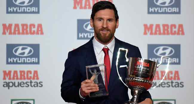 The Argentine, who currently leads this season’s La Liga scoring with 14 goals, also received the Alfredo Di Stefano trophy for the league’s best player.