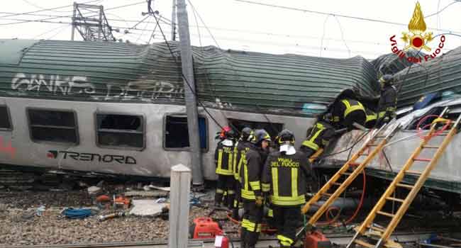It is the most serious rail accident in Italy since 23 people were killed in a high-speed head-on collision between two passenger trains in July 2016 in the southern Puglia region.