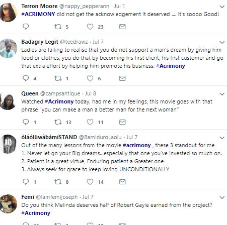 It’s no doubt that Acrimony is indeed one that leaves most viewers in utter shock and in a state of introspection.