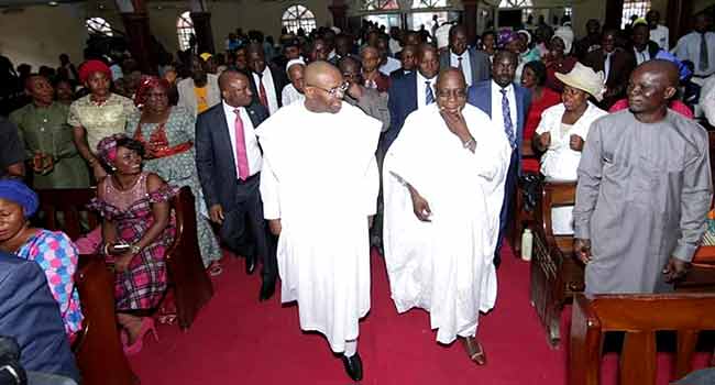 In attendance at the church service is the wife of the governor, Martha Emmanuel, Deputy Governor, Moses Ekpo, State Assembly Speaker Onofiok Luke, amongst other dignitaries.