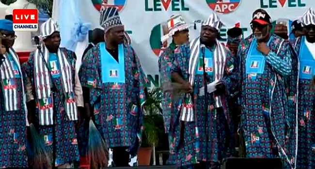 The National Chairman of the All Progressives Congress (APC) Adams Oshiomhole, National Leader Bola Tinubu, Ekiti State Governor Kayode Fayemi, Minister of Transportation Rotimi Amaechi have graced the President Muhammadu Buhari’s campaign in Lagos.