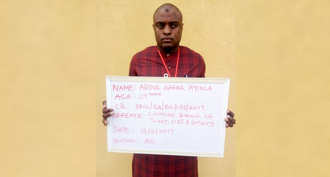 The Economic and Financial Crimes Commission (EFCC), Ilorin Zonal Office has arrested a member-elect of the Kwara State House of Assembly, Hon. Abdulgafar Ayinla over his alleged involvement in property scam, forgery and obtaining money under false pretence to the tune of about N26,000,000 (Twenty Six Million Naira).