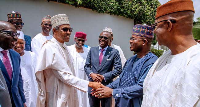 Governors of the All Progressives Congress (APC) met withPresident Muhammadu Buhari at the council chamber in Abuja to thank him for the support shown in areas of security and economy.