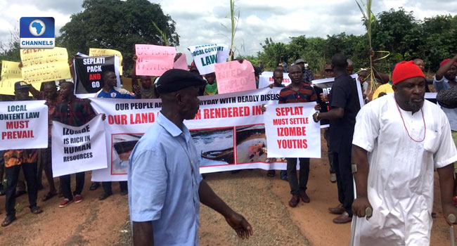 Youths from Izombe community in Oguta Local Government Area of Imo state have staged a protest at the entrance of Seplat Oil Company.