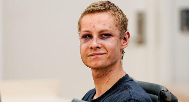 Terror suspected Philip Manshaus attends a hearing at an Oslo courthouse on August 12, 2019 in Norway. Norwegian 21-year old Philip Manshaus, is formally suspected of murder in the death of his 17-year-old stepsister, and of a “terrorist act” at the Al-Noor mosque on August 10, 2019, police said in a statement.
