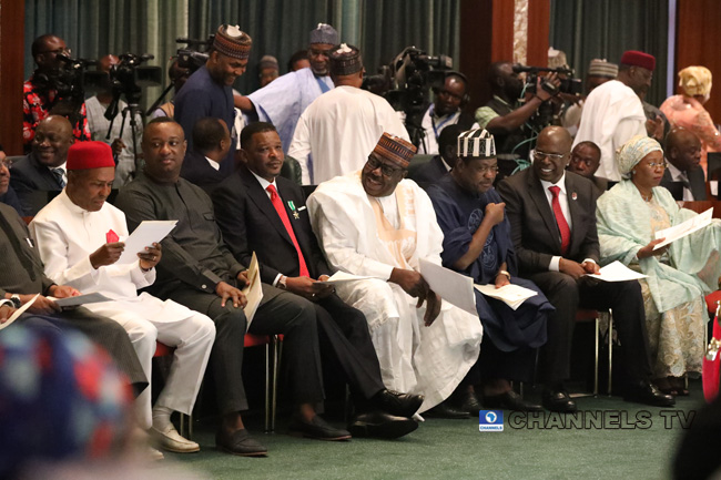 President Muhammadu Buhari has inaugurated his cabinet, about a week shy of three months after he was sworn-in as President.