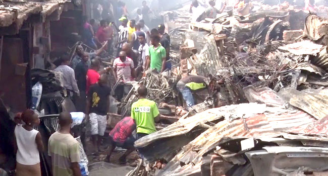 During a visit by Channels Television crew on Saturday, a mammoth crowd gathered at the scene, lamenting the devastating incident, as well as questioning the competence of the market security guards.