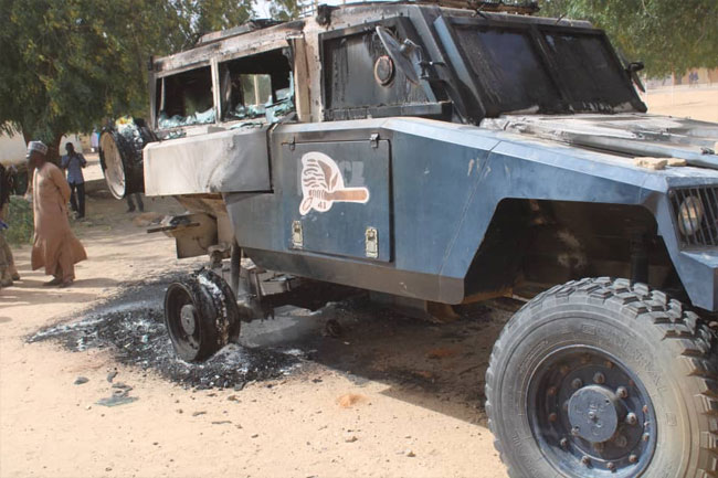 They attacked the Divisional Police Headquarters and the Nigerian Army formation in the town, while one police armoured vehicle was set ablaze.