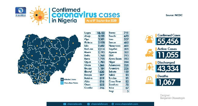 With this, the number of confirmed COVID-19 cases has risen to 55,456 with 43,334 people successfully managed and discharged.