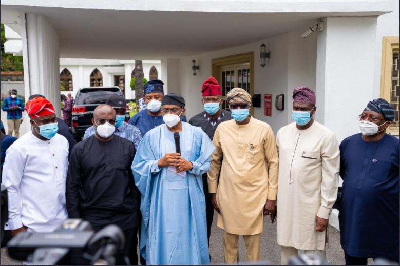 The governors and ministers on Sunday met with Governor Sanwo-Olu at the government house in Marina.