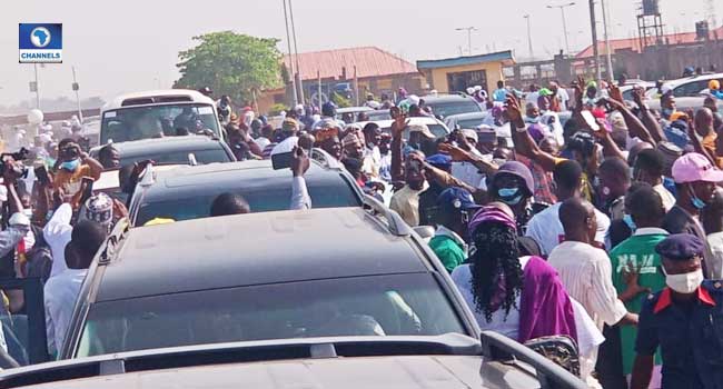 Supporters lined up the route leading to the palace of the Emir of Ilorin.