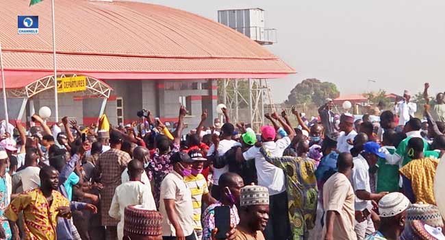 The ex-Senate President was welcomed by a huge crowd of supporters at the Ilorin International Airport.