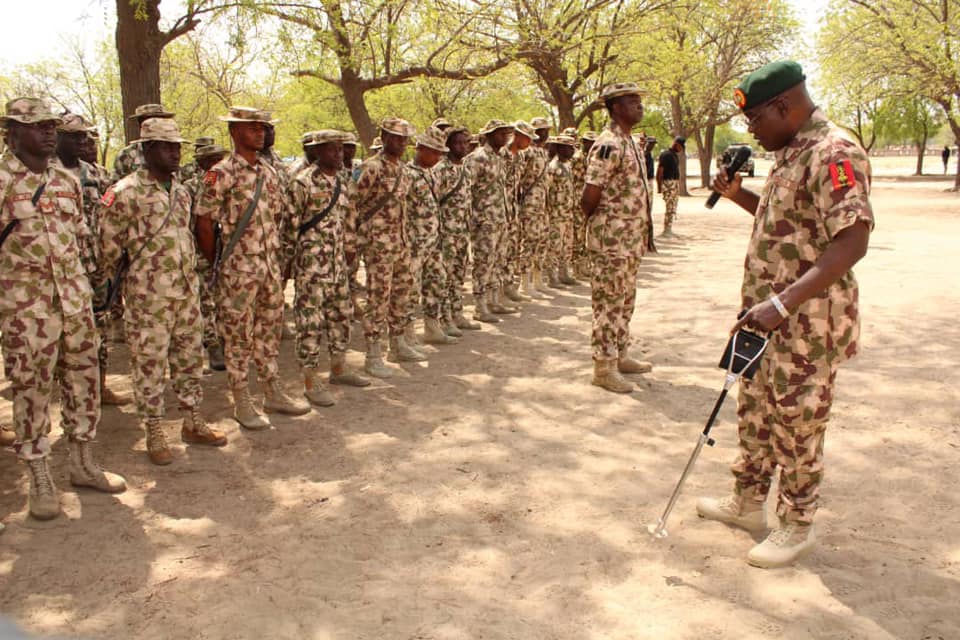 The COAS was accompanied during the tour by the Chief of Operations (Army) Major General Ibrahim Yusuf, Theatre Commander Operation HADIN KAI, Major General Christopher Musa, the Provost Marshal (Army) Major General Robert Aiyenigba, Chief of Military Intelligence (Army) Brigadier General Danladi Salihu, Maritime Component Commander OPHK Commodore Richard Shammah, among other principal staff officers.