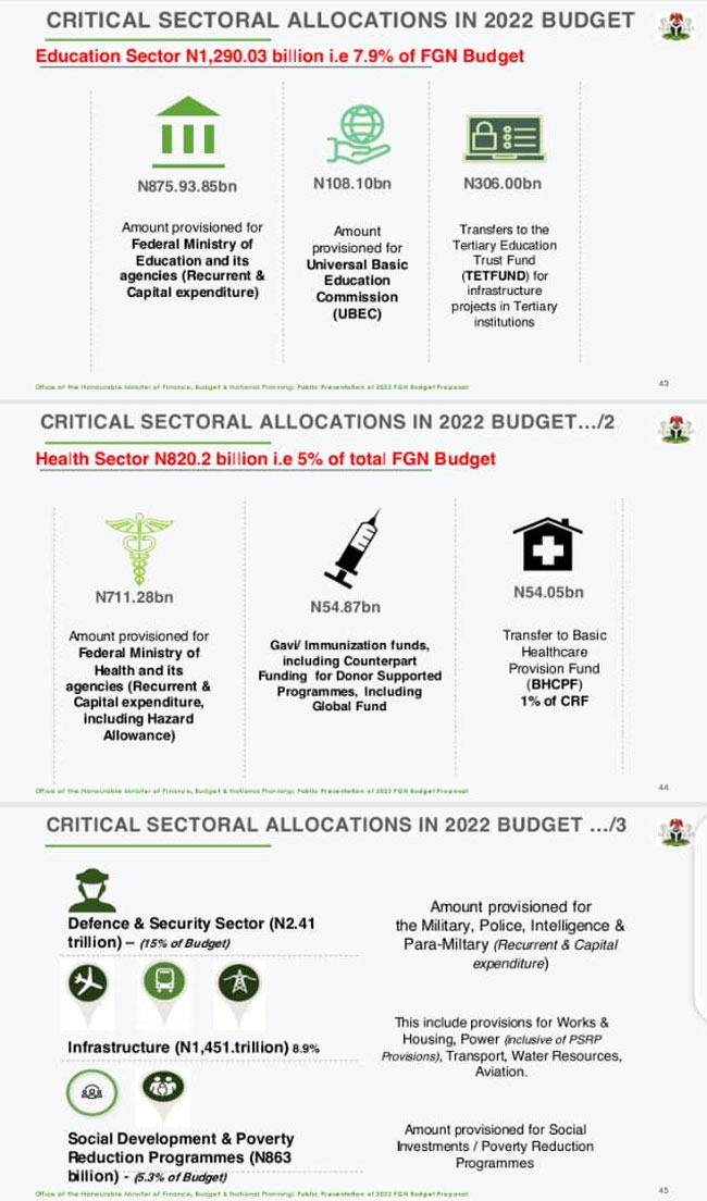 The minister also gave an overview of the performance of the 2021 budget, and a global outlook of the revenue deficit in the 2022 budget, among others.