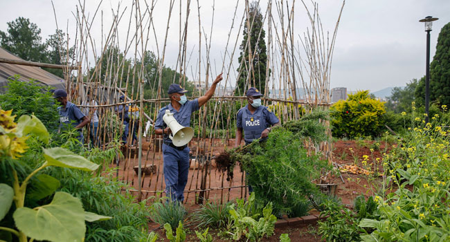 South African police Wednesday uprooted cannabis plants grown by indigenous activists who have camped outside President Cyril Ramaphosa’s office for more than three years, AFP reporters saw.