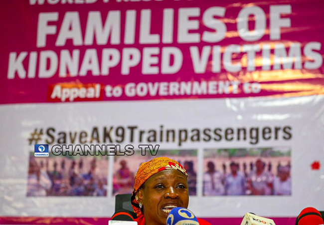 Families of kidnapped victims of the Kaduna train attack on Thursday held a press briefing to appeal to the government to rescue their loved ones still in captivity.