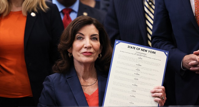 Kathy Hochul approved a package of gun reform laws that had been passed by the state senate in the wake of last month’s shooting that killed 10 Black people.