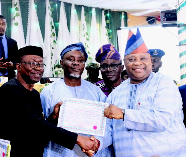 The deputy governor-elect, Prince Kola Adewusi also received his at the ceremony.