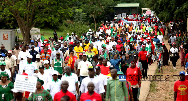 The Nigeria Labour Congress (NLC) on Wednesday stormed the National Assembly in Abuja in protest over the prolonged strike by university workers across the country.