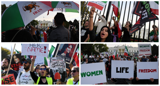 They chanted slogans such as “Women, life, freedom” and “Justice for Iran” as they walked from the National Mall — the vast green expanse that is home to the Washington Monument — to the White House.
