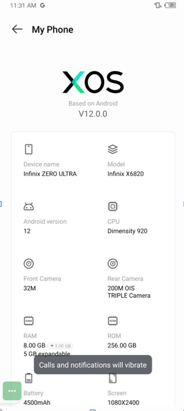 This phone comes pre-installed with XOS 12, which is based on Android 12. I’ve had no major issues with it; there haven’t been any glitches or spelling errors.