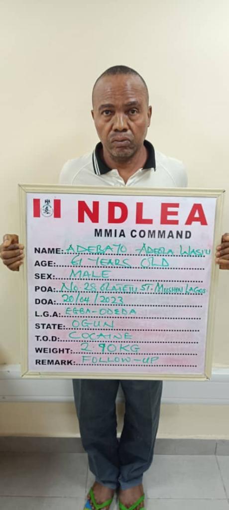 The previous day, Wednesday 19th April, NDLEA officers at the Terminal 2 of the airport also arrested Mrs. Silifat Tunrayo Akanbi with 2.90kg cocaine during outward clearance of Qatar Airways passengers from Lagos via Doha to Jedda, Saudi Arabia. A search of her hand luggage led to the discovery of six sheets of cocaine weighing 2.90kg concealed in ankara fabrics.