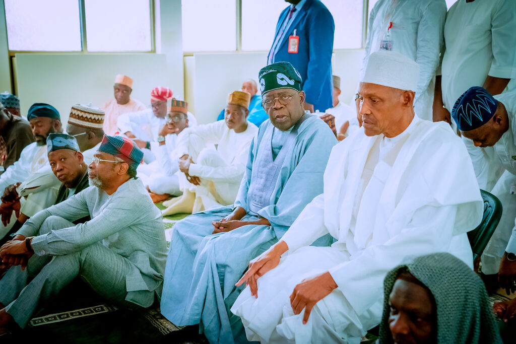President Muhammadu Buhari and the President-elect, Bola Tinubu, partook in the Friday Juma’at prayers at the Presidential Mosque in Abuja.