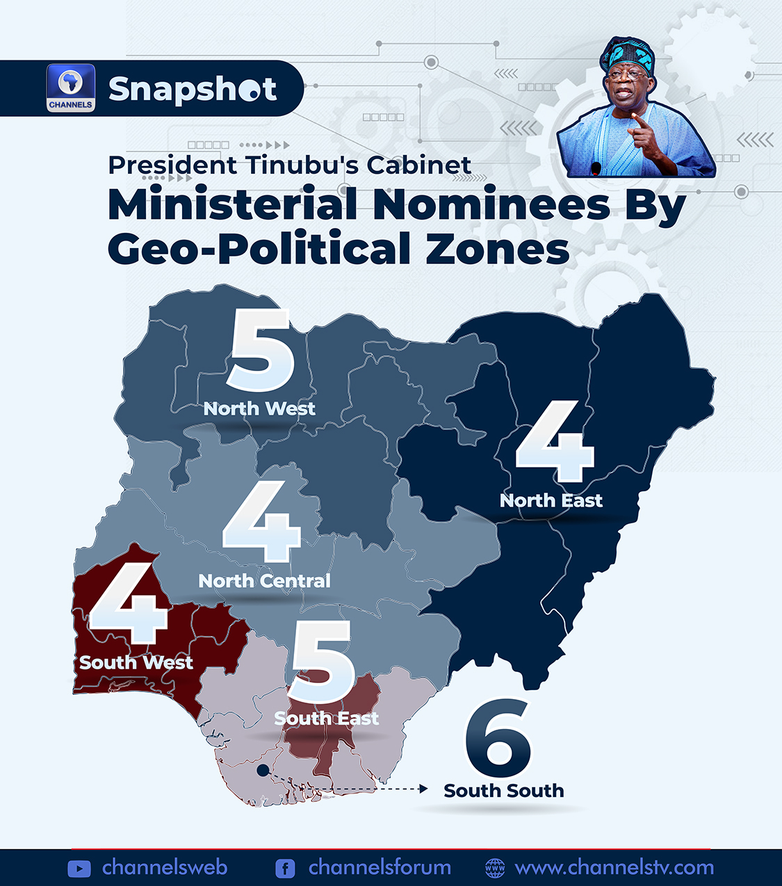 Below is a breakdown of the 28 ministerial nominees according to the geopolitical zones: