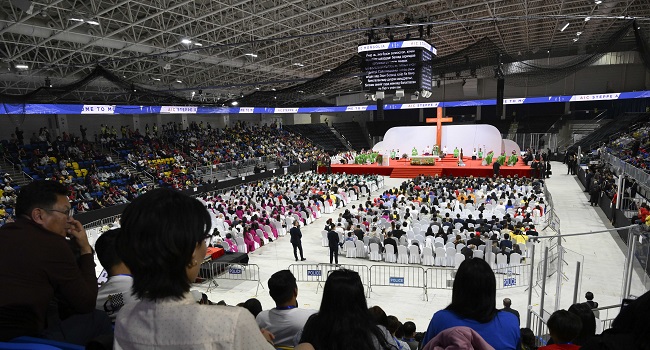 In the crowd at the mass held in a newly built ice hockey arena was a Chinese woman who had travelled from the northwestern city of Xi’an.
