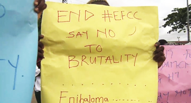 According to the protesters, EFCC operatives molested the youths, arrested some and damaged some properties.