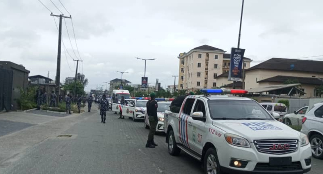 Some officers were also seen matching through Lekki streets to the Lekki Tollgate area.