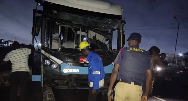 Many passengers were injured following a late-night collision involving two Bus Rapid Transit (BRT) buses at the Iyana Ipaja area of Lagos on Tuesday.