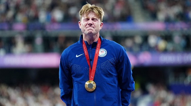 One half of the duo, US double amputee sprinter Hunter Woodhall, had propelled his prosthetic blades to Paralympic gold in the T62 400 metres in Paris on Friday.