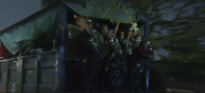 Some unspecified number of policemen were also sighted inside two trucks and two Hilux vehicles.