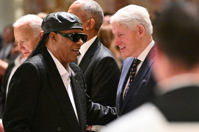 The audience on Wednesday also included celebrities such as musicians Stevie Wonder and Sting.