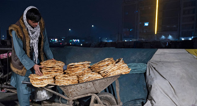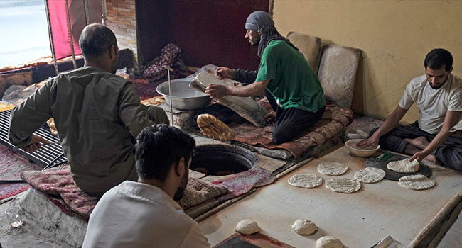 Thick halves of homemade hardy loaves dotted the colourful cloth spread on the floor of Beg Murad Nabizada’s home in eastern Kabul, where he shares evening meals with his family of four.