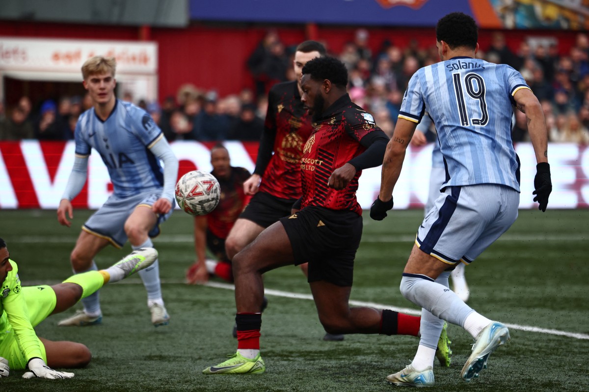The non-league outfit should have been ahead in the opening seconds as Enoru raced through the static Tottenham defence and unloaded a powerful effort that forced a good save from Antonin Kinsky.