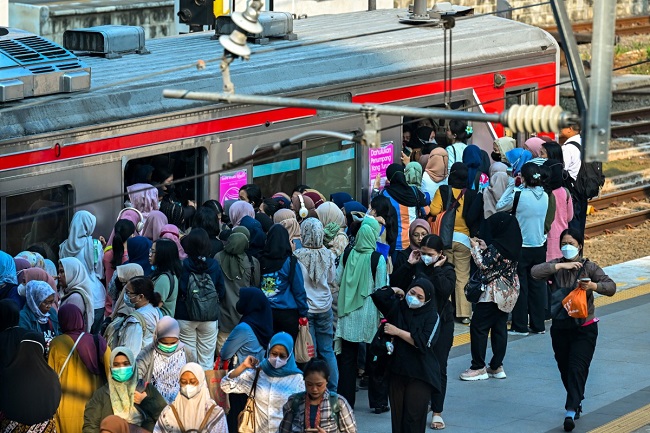 The office worker in one of Jakarta’s main business districts commutes by train for an hour from his home in West Java province.