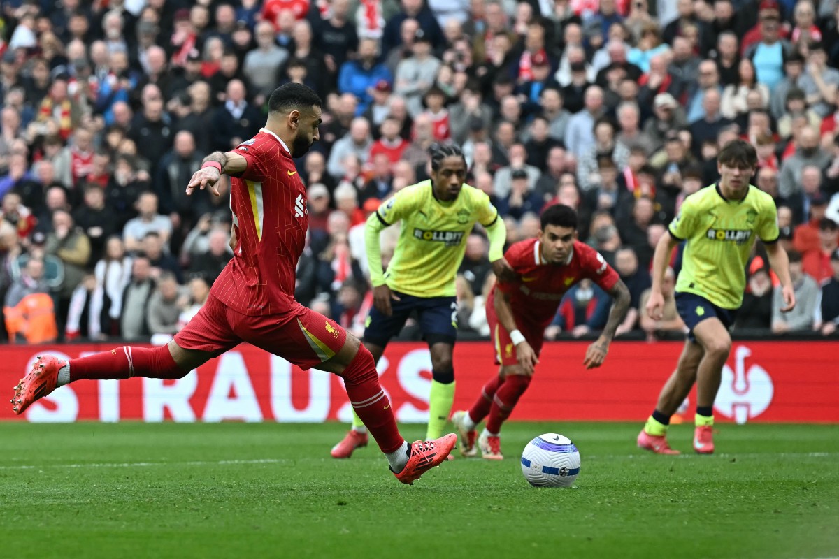 The Egyptian slotted home a second penalty two minutes from time to take his tally for the season to 32 goals.