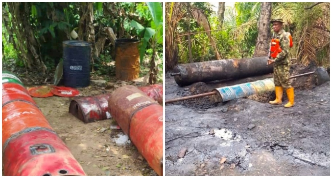 It further stated that in Rivers State, troops intensified operations that disrupted illegal bunkering activities around Joinkrama 4 Forest in Ahoada West Local Government Area, where welding machines and newly constructed drums were recovered. It added that, following credible intelligence, troops raided De Tropicana Hotel in the same LGA and intercepted two Toyota Camry vehicles loaded with over 1,300 litres of illegally refined Automotive Gasoline Oil (AGO), which were abandoned by fleeing drivers.