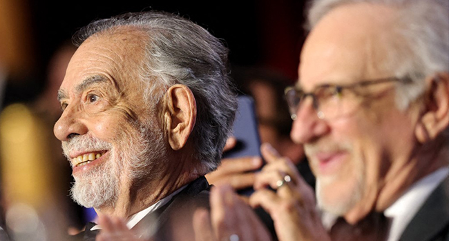 “Star Wars” creator Lucas recalled Coppola telling him “don’t be afraid of jumping off cliffs,” while Spielberg hailed the “fearless” director and said that “The Godfather” was “the greatest American film ever made.”